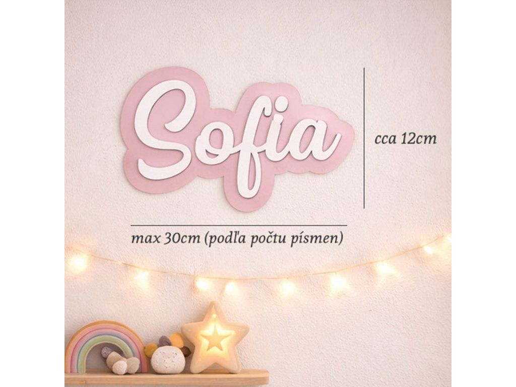 - výška: 12 cm , maximálna dĺžka: 30 cm (dĺžka sa prispôsobuje podľa počtu písmen v mene)