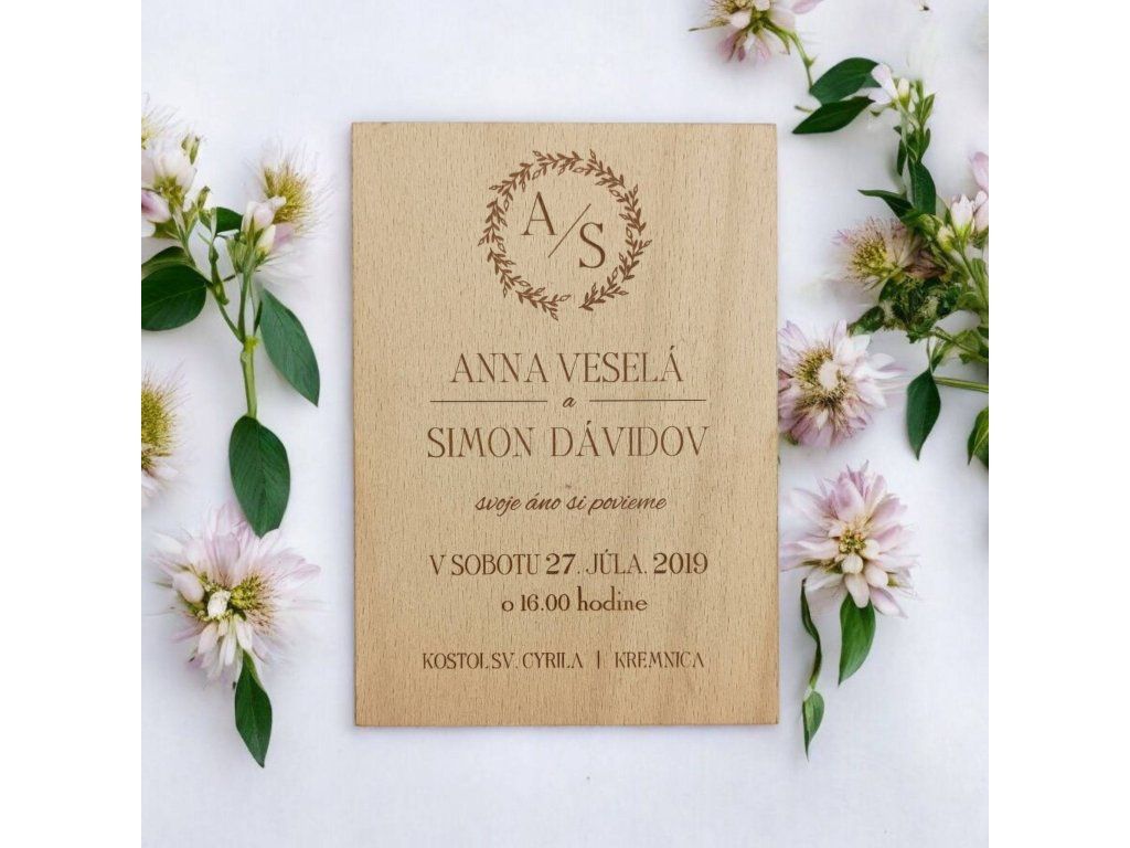 Svadobné oznámenie drevené Kvet